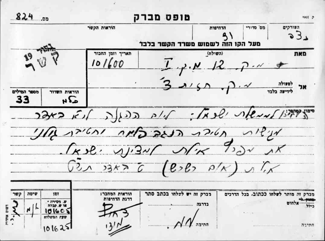 תיאור התמונה: המברק שנשלח ב-10 מרץ על כיבוש אום רשרש