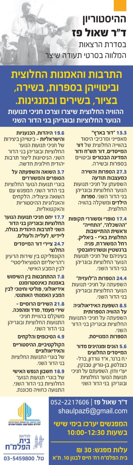 מסע אל התרבות והאמנות החלוצית עם ד"ר שאול פז