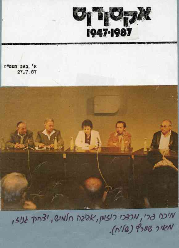 Displayed in Photo: מיכה פרי, מרדכי רוזמן, אביבה חלמיש, יצחק גנוז, מאיר שוורץ