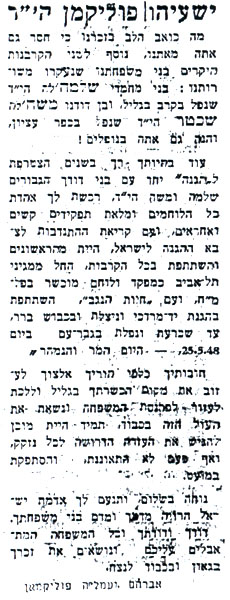 ב-ט"ז אייר תש"ח, 25/5/1948