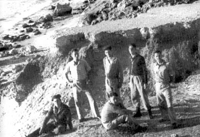1947 - מוטי יחד עם מוסא פלד, ישראל טל וחברים נוספים, בסדרת אימונים בגבעת ג'וערה